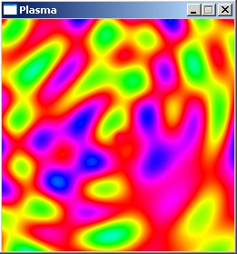 You could also calculate a separate plasma for each color channel, etc..., the possibilities are endless, but this will always be slower than the color palette looping, especially with the unoptimized code from these tutorials.